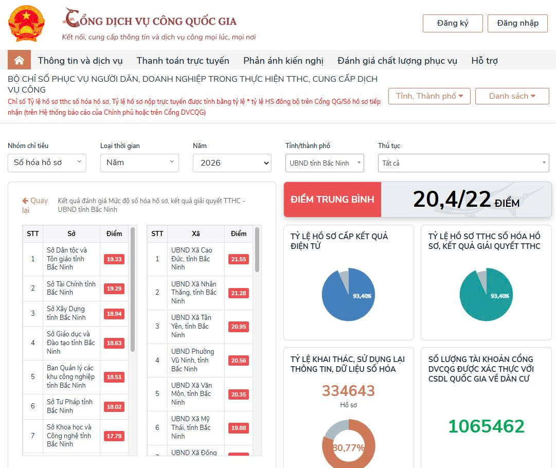 Bên cạnh đó, Trung tâm Phục vụ hành chính công tỉnh Bắc Ninh giữ vai trò quan trọng trong việc theo dõi, đánh giá và thúc đẩy hiệu quả công tác số hóa trên toàn tỉnh. Trung tâm thường xuyên cập nhật, theo dõi điểm số hóa hồ sơ của các sở, ngành, địa phương để phân tích, đánh giá thực chất kết quả triển khai, từ đó kịp thời đưa ra các giải pháp khắc phục những tồn tại, hạn chế. Đồng thời, đơn vị cũng chủ động xây dựng các video hướng dẫn, hỗ trợ người dân và cán bộ trong việc khai thác dữ liệu, đặc biệt là hướng dẫn cách thức lấy giấy tờ trong kho dữ liệu cá nhân khi thực hiện dịch vụ công trực tuyến. Việc đẩy mạnh kết nối, đồng bộ với các cơ sở dữ liệu quốc gia cũng được chú trọng, góp phần nâng cao tỷ lệ tái sử dụng dữ liệu, giảm thiểu việc yêu cầu người dân cung cấp lại thông tin.